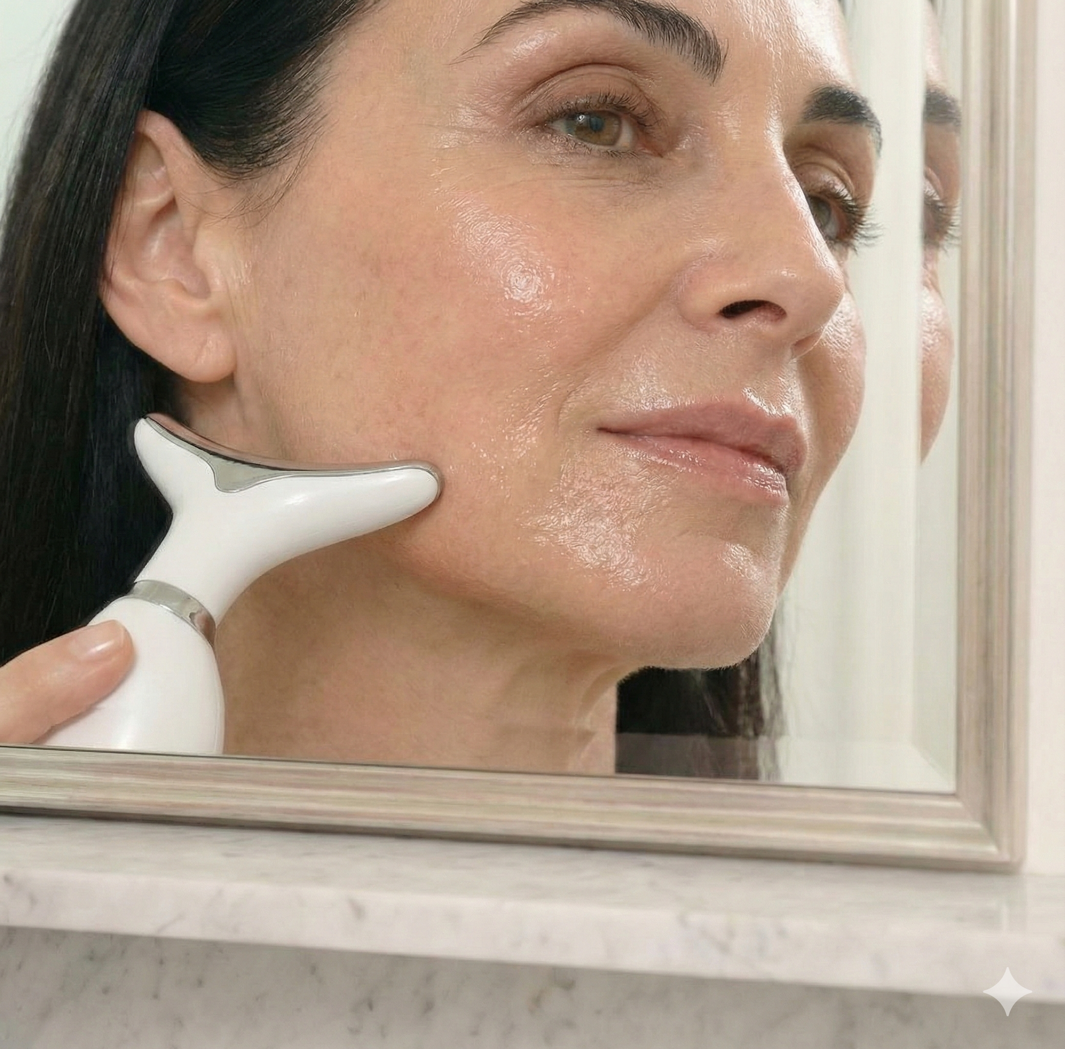 - Véritable micro-courant (EMS) à intensité réglable → contours re-sculptés, fermeté soutenue.